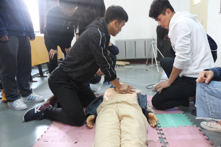 上午八点,刘莉萍于一教221为参与活动的同学们进行基本急救知识培训,刘莉萍为同学们进行了心肺复苏的培训,讲述了心脏复苏术的关键点,并让同学们分组亲手实践将理论与实际结合,同学们认真听讲,并随后用仿真人进行了心肺复苏的实际操作,在实践中学会了更多的细节,在老师的细心讲解下有了更为深刻的理会。