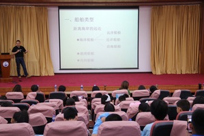 报告中,于欣老师讲述了船舶的定义、分类、动力装置,围绕特种船舶、军舰等方面,穿插历史、生物、文化等学科知识,为同学们讲述了一场精彩的船舶知识报告。同学们兴致勃勃地听讲,不时与老师互动交流,许多专业知识都在于欣老师生动有趣的讲解中得到了解答。