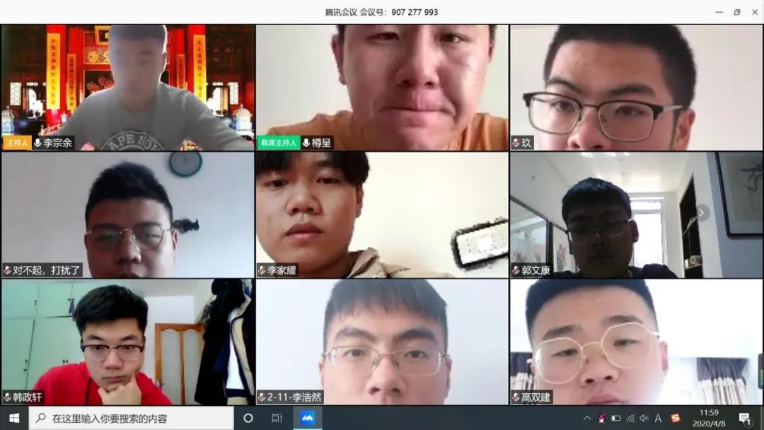 4月8日,2018级船舶一、二、三、四班、轮机一、二、三班分别通过腾讯会议召开以“疫情尚未结束,防控仍在进行”为主题的线上班会,班会由各班级班长主持,辅导员葛泰亨和全体同学参加。
