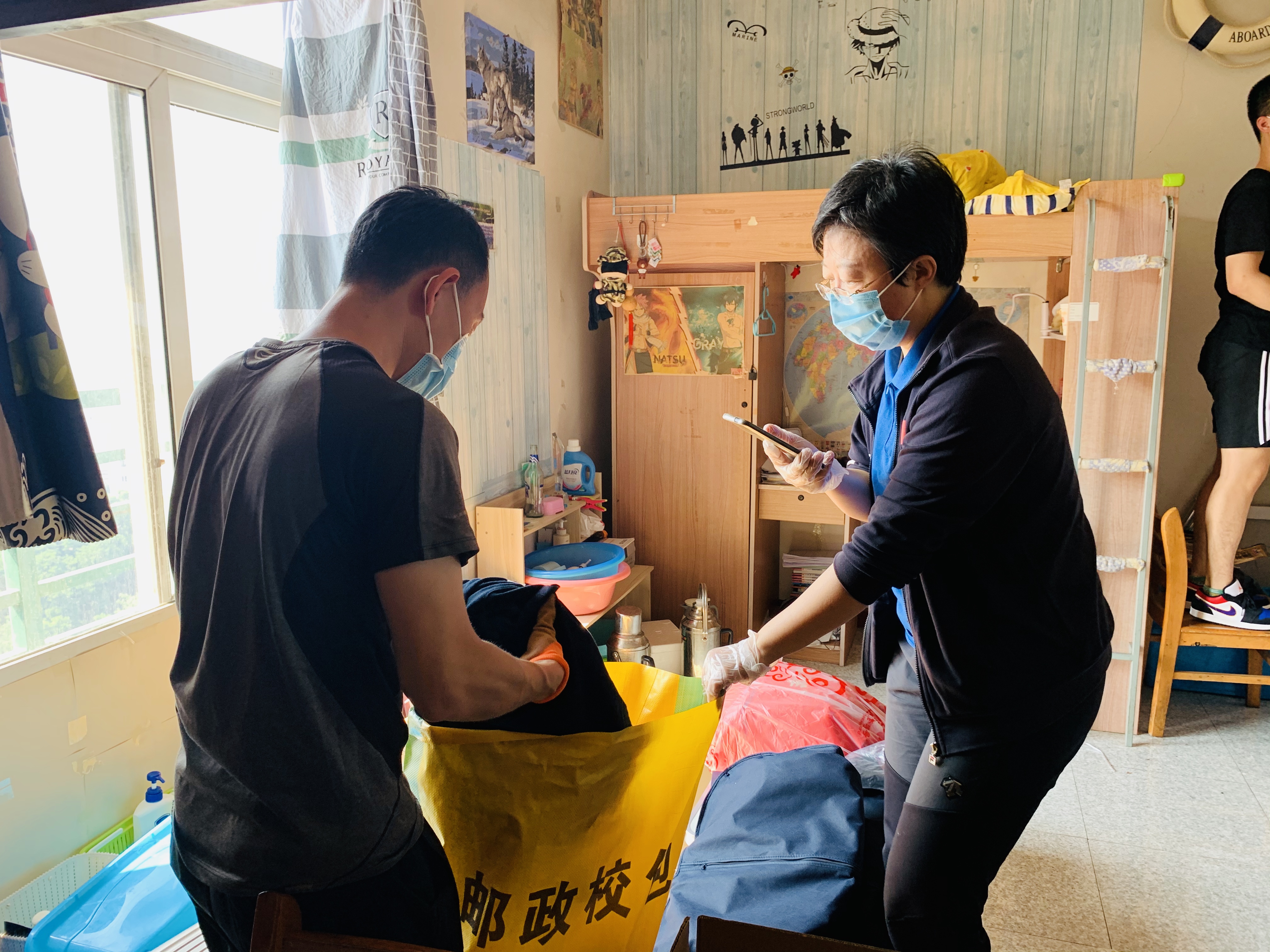 在学生的“导航”下,一件件精准“定位”物品,反复确认,精心整理,确保物品准确齐全,保证每一件行李完好无损的打包入袋,这背后是每一个秉承“为学生服务”初心的老师不计回报地默默奉献。老师们用自己的劳动和汗水,寄给每位毕业生一份“厚重的礼物”。不论是毕业还是疫情,割不断的是航船学院和每位学生的师生情。