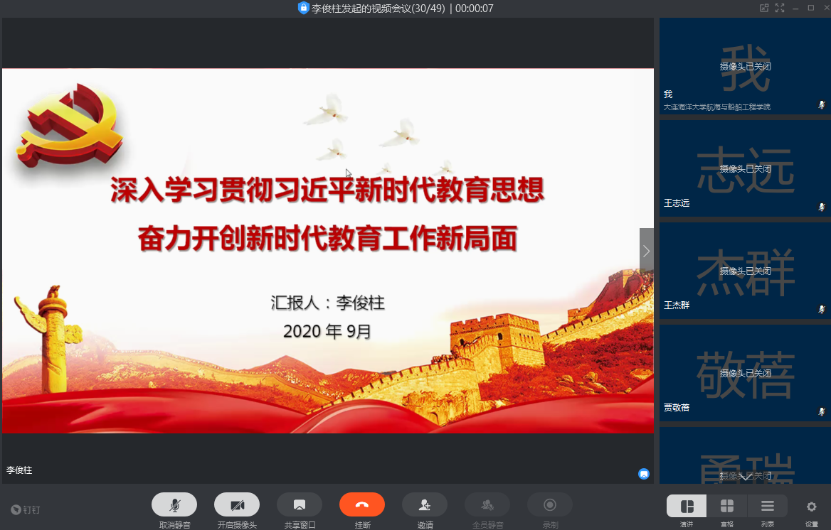为落实《中共大连海洋大学委员会关于组织学习<习近平总书记教育重要论述讲义>实施方案》的通知要求,9月16日,爱爱视频 党总支通过钉钉平台开展“深入学习贯彻习近平新时代教育思想,奋力开创新时代教育工作新局面”线上专题党课,学院全体党员参加了此次党课,党课由党总支书记李俊柱主讲。