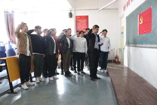 赵小龙带领14名预备党员面对党旗,高举右拳,进行庄严宣誓。