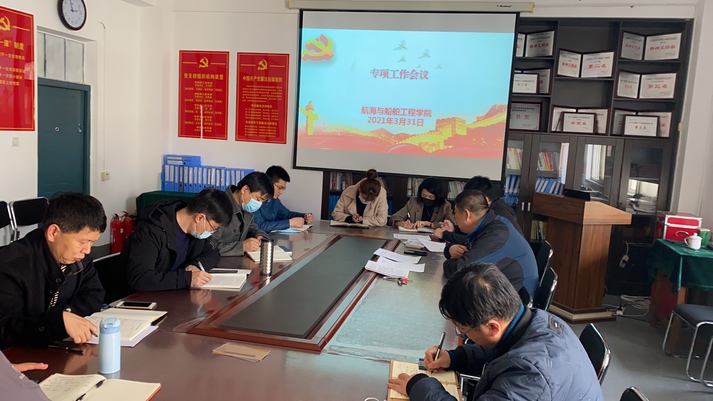 会上传达了学校专项工作会议精神,对学院本年度专项工作以问题为导向进行了全面布置;同时传达了《大连海洋大学党史学习教育实施方案》和《在全校党员中开展党史学习教育工作安排》文件精神,对学院党史学习教育活动进行了再动员、再布置。