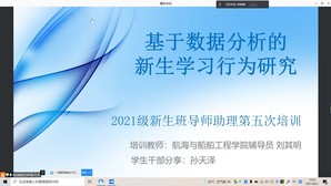 8月21日,爱爱视频 于腾讯会议开展2021级新生班导师助理培训班第五次培训。培训主题为:基于数据分析的新生学习行为研究。主讲人为:学院辅导员刘其明、学生干部孙天泽。学院党总支副书记王海鹏、辅导员郑淑娟以及全体新生班导师助理参会。