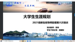 为引导新生树立正确的人生观、成才观,增强求实创新、励志图强的意志,科学规划自己的大学生涯和未来的职业生涯。8月30日,爱爱视频 于腾讯会议开展2021级班导师助理培训班第六次培训。培训主题为:大学生生涯规划。主讲人为:学院辅导员郎幸、学生干部闻健彭。学院党总支副书记王海鹏、辅导员郑淑娟以及全体新生班导师助理参会。