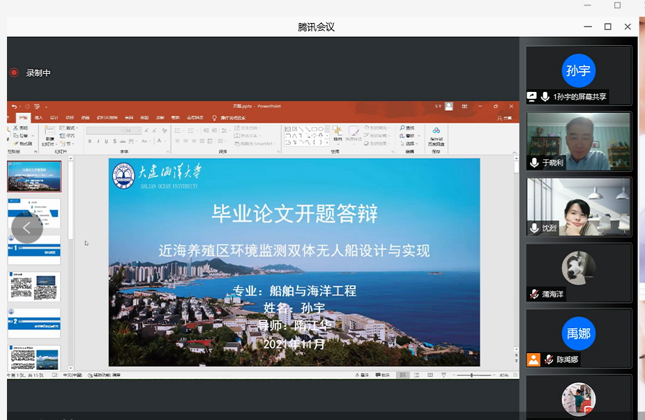 本次硕士学位论文开题邀请了大连舰艇学院、大连船舶重工、大连松辽船厂、油特机械工具(大连)有限公司等4名高校教授和企业专家担任开题评审组组长或成员。各评审组严格履行学校硕士研究生学位论文开题工作程序,遵照学校要求有序进行,并以严谨、负责的学术态度,明确指出开题报告中存在的问题,并提出针对性的修改建议。6名船舶与海洋工程学术硕士与15名船舶工程领域专业硕士通过本次开题报告答辩,通过率为100%。