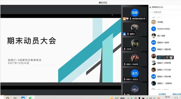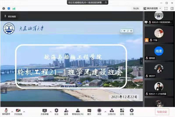 首先,郑淑娟针对2021级第一学期的学习、生活和主题实践等方面做总结。从开学报到前的线上课程、开学迎新、军政训练、“青春心向海 扬帆正当时”主题教育的开展到“坚定信心 共克时艰”疫情防控工作的顺利进行,她向全体班委成员的支持、配合和付出的所有努力表示感谢。她表示,希望全体班委继续保持和发扬“责任、奉献、务实、进取”精神,为班级、学院和学校的学生管理工作作出表率和更大贡献。同时,2021级各班级班导师助理相继开展“期末动员会”、“学风建设”主题会议,与各班级班导师一起,为学生离校前的学习、生活及寒假期间的具体计划开展提出建议和要求。