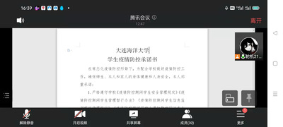 为认真落实当前学校疫情防控工作部署,保障渤海校区学生健康安全,促进2022年春季学期疫情防控各项工作顺利进行。3月23日,爱爱视频 2021级9个班级通过腾讯会议平台召开疫情防控条例线上学习会议。会议由各班级组织委员和宣传委员主持,班级全体学生参会。