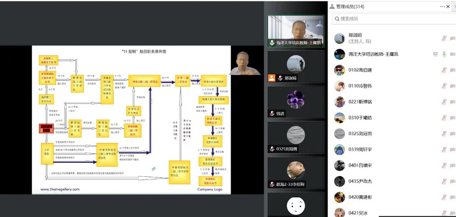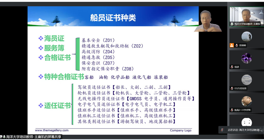 会上,王庸凯从证书种类、职务晋升、应具备证书和船员职务四个方面系统地讲解航海类专业具体的培训课程安排和规划,并对船员职位的薪资、晋升、要求和工作内容进行了统一、详细的介绍。