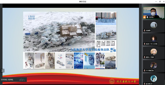 会议伊始,刘其明老师向同学们阐述大连海洋大学建校70年历程,从1952年创建的东北水产技术学校到2010年升格为大连海洋大学,直至今天,七十载弦歌不辍传薪火。