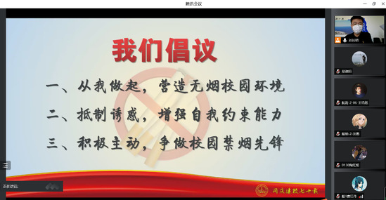 其次,刘其明老师就“营造无烟校园环境”向同学们发起倡议,四名学生代表宣读“无烟校园”倡议书。同时就2022年世界无烟日:“烟草”对环境和身体的危害作进一步说明,也进一步强调为营造安全、卫生寝室氛围,要求全体同学遵守大学生日常行为规范,争做文明大学生。