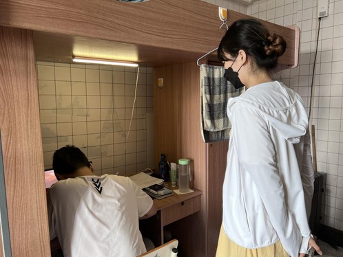 学院领导班子成员和任课教师组成线上“云”监考队伍,每个“寝室考场”配备两台“监控”设备,分别对应相关监考视角,达到线上无死角监考;其次,学生干部协助监考,每个“寝室考场”指派一名高年级学生干部协助监考,对“寝室考场”学生进行实时监督,进行考场纪律约束,保证同学们诚信考试;最后,由入驻管理区辅导员郎幸老师作为线下流动巡考,对正进行期末考试的班级同学进行实地监考,进一步严格考场管理,努力营造公平、公正、公开的考试氛围。