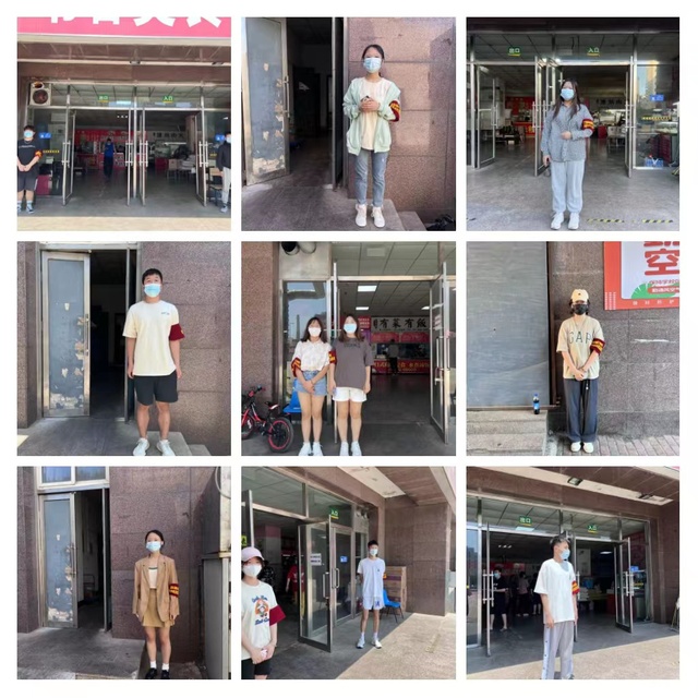 初夏正午的骄阳虽烈,却掩盖不了志愿者火热的内心;傍晚斜风的微冷,也吹不散志愿者凝聚的众心。每日的11:30-13:00与17:30-19:00食堂门口值守的志愿者都会准时出现在食堂的门口,在看到没有佩戴口罩的学生时提醒其佩戴口罩入内,并准备了备用口罩以防有学生忘记佩戴口罩。无论是炎热还是寒冷,志愿者都会准时准点到达,为大学生公寓的师生筑起一道坚不可摧的防疫之墙。