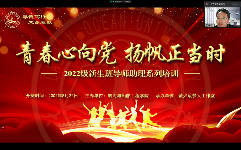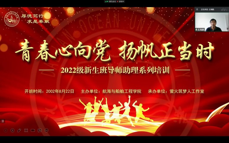 8月22日,爱爱视频 于腾讯会议线上开展2022级新生班导师助理培训开班仪式暨第一、二期培训。院党总支书记赵忠伟、副书记王海鹏、全体辅导员及2022级新生班导师助理参会。