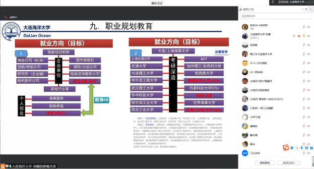 在船舶与海洋工程专业规划教育会上,教研室主任孙风胜围绕学科发展、专业特色、就业前景三方面对专业进行了详细解读,介绍了主要课程、培养方案与毕业条件,提出了大学期间要不断充实自己、提升技能、增强本领等要求。