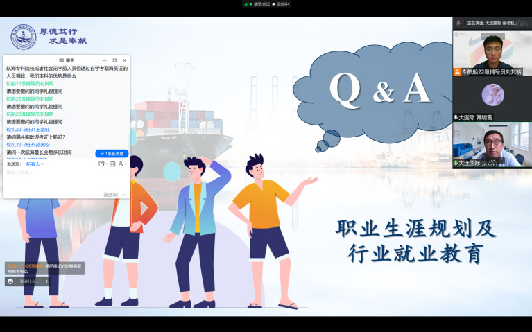 提问交流环节,张慧与韩明雪就同学们关心的本科优势、船员体检以及航船医疗水平等问题进行了热情、专业、细致的解答,让同学们对如何规划大学时光有了新思考、新认识。