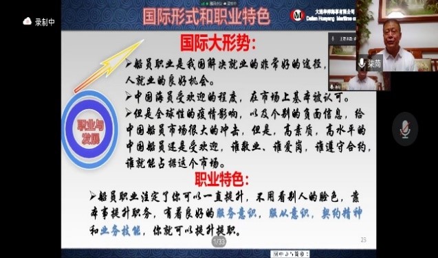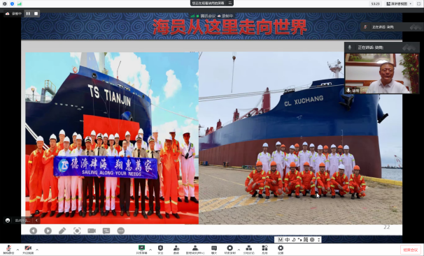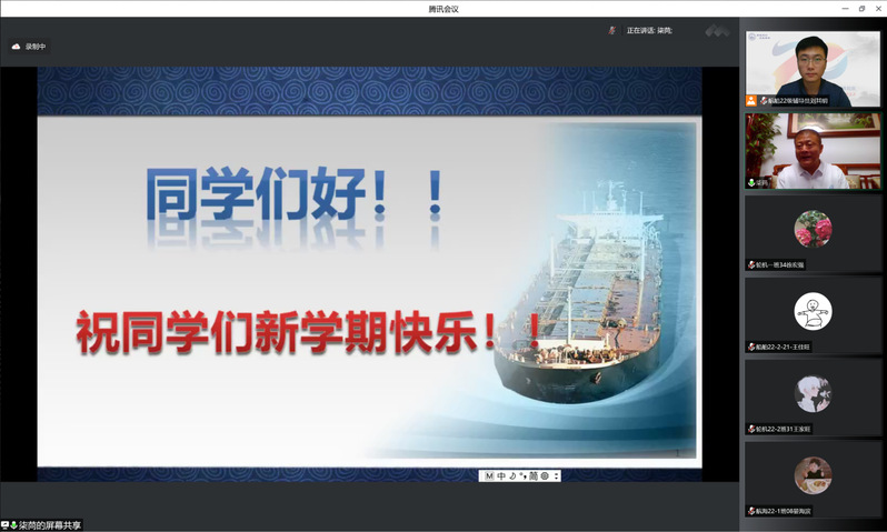 随后,梁东升通过实拍视频和照片的形式向同学们介绍了船舶发展的巨大变化,并介绍了船舶内部构造、实际工作环境和具体工作任务。