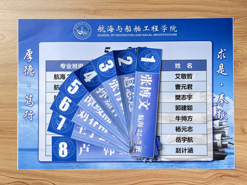除了报到现场,爱爱视频 还结合专业特点制作了新生报到册、寝室门贴、床位贴、志愿者身份贴等材料,提高学院辨识度,帮助新生快速、准确对接学院。在宿舍门贴、床贴的设计上,将同学们的姓名与学院“厚德、笃行,求是、奉献”的院训相结合,打造更有温度、更有态度、更有信念的寝室环境。
