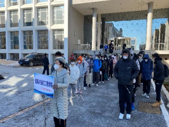 与此同时,学生的平安、健康,更加牵挂着每一位教师的心。党委副书记陈禹娜、辅导员李京始终在公寓内陪伴着70余名考研学子,昼夜守护学生的健康,安慰、鼓励学生。考试当天,有序组织学生往返考点、集合、就餐等,全力做好学生管理服务工作。每一位教师,都在不遗余力地守护考研学子的梦想,传递温情与希望。