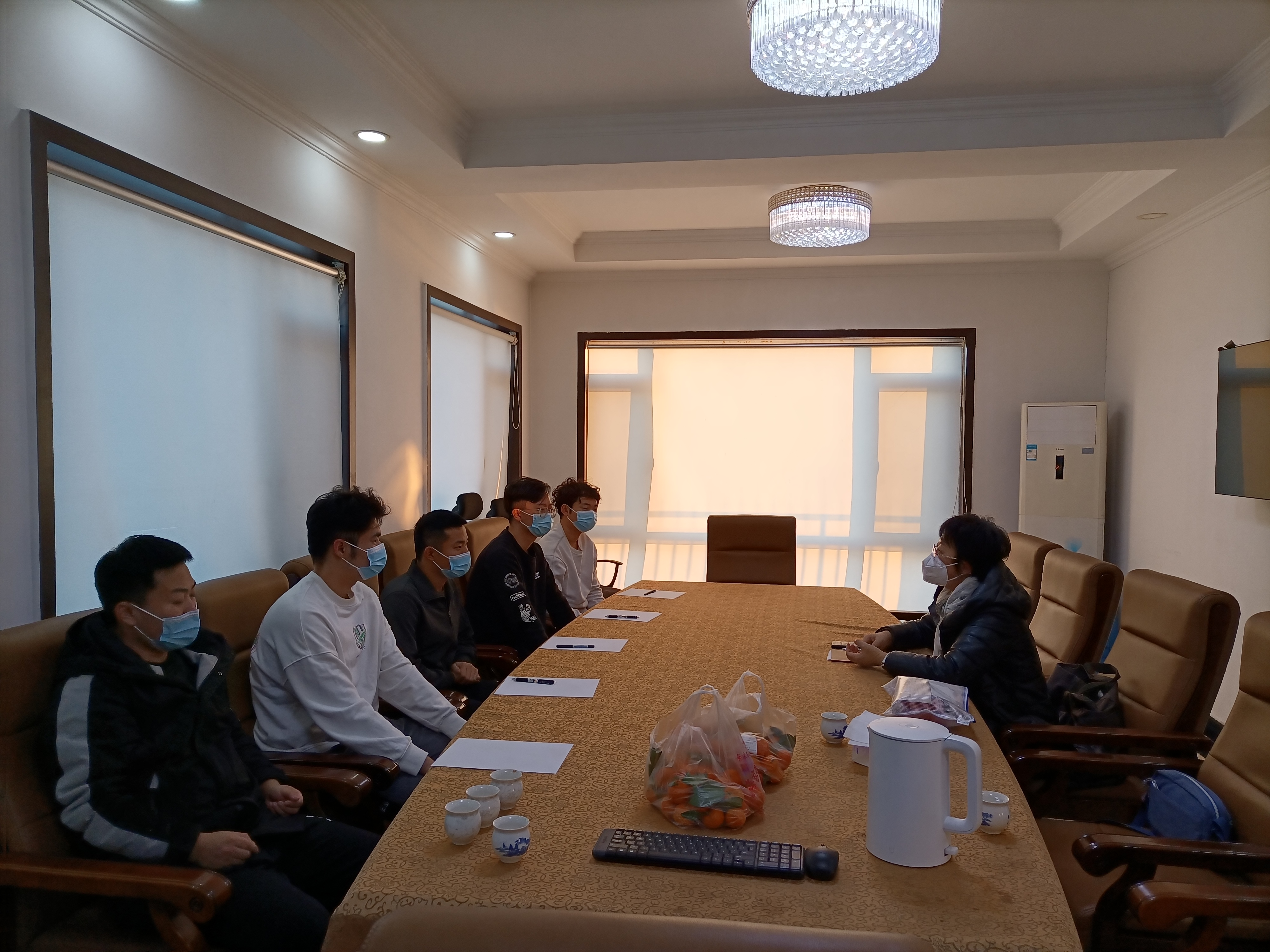隋江华首先代表学院对在大连湾辽宁省渔港监督执法队实习的许航、许文凯、彭云杰、王鸿博、董昆池、王统帅、林楠飞等7名研究生表示亲切问候,并详细了解了学生在实习单位的工作及学习情况,询问学生在生活、学习方面的需求。