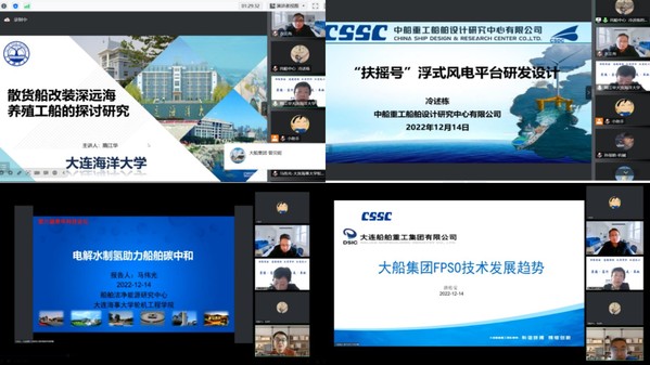 本次论坛特别邀请了中船重工船舶设计研究中心有限公司高级工程师冷述栋,大连海事大学轮机工程学院副教授马伟光,我校爱爱视频 院长隋江华和大连船舶重工集团设计院正高级工程师唐传安等国内行业资深专家学者作大会主旨报告,与会专家分别就《“扶摇号”浮式风电平台研发设计》《电解水制氢助力船舶碳中和》《散货船改装深远海养殖工船的探讨研究》《大船集团 FPSO 技术发展趋势》等展开交流和探讨。