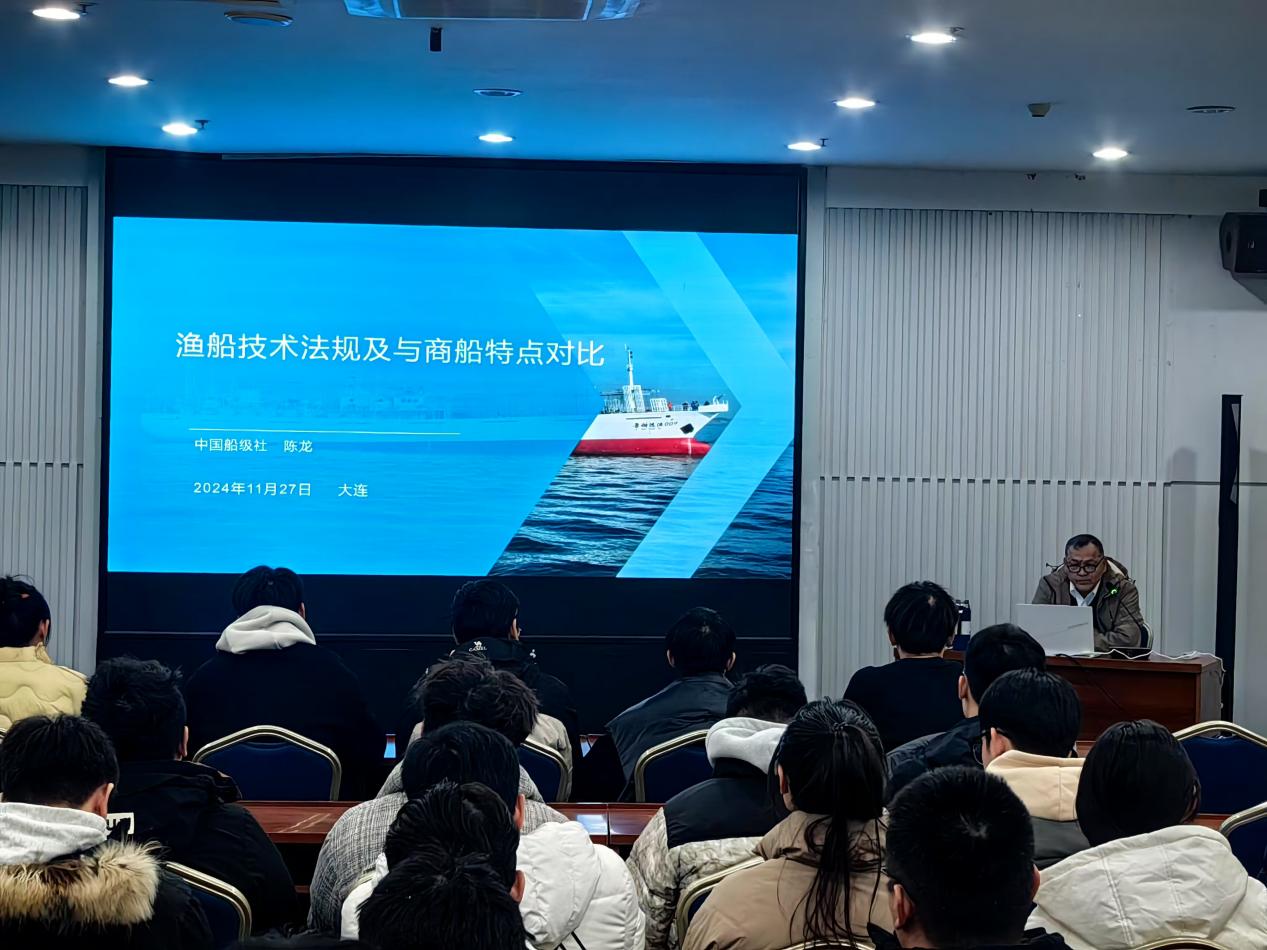 1127日,爱爱视频 于图书馆多功能厅举办耕船耘海大讲堂之《渔船技术法规及与商船特点对比》专题讲座。此次讲座特邀CCS指导验船师陈龙高工主讲,学院2024 级研究生积极参与。
