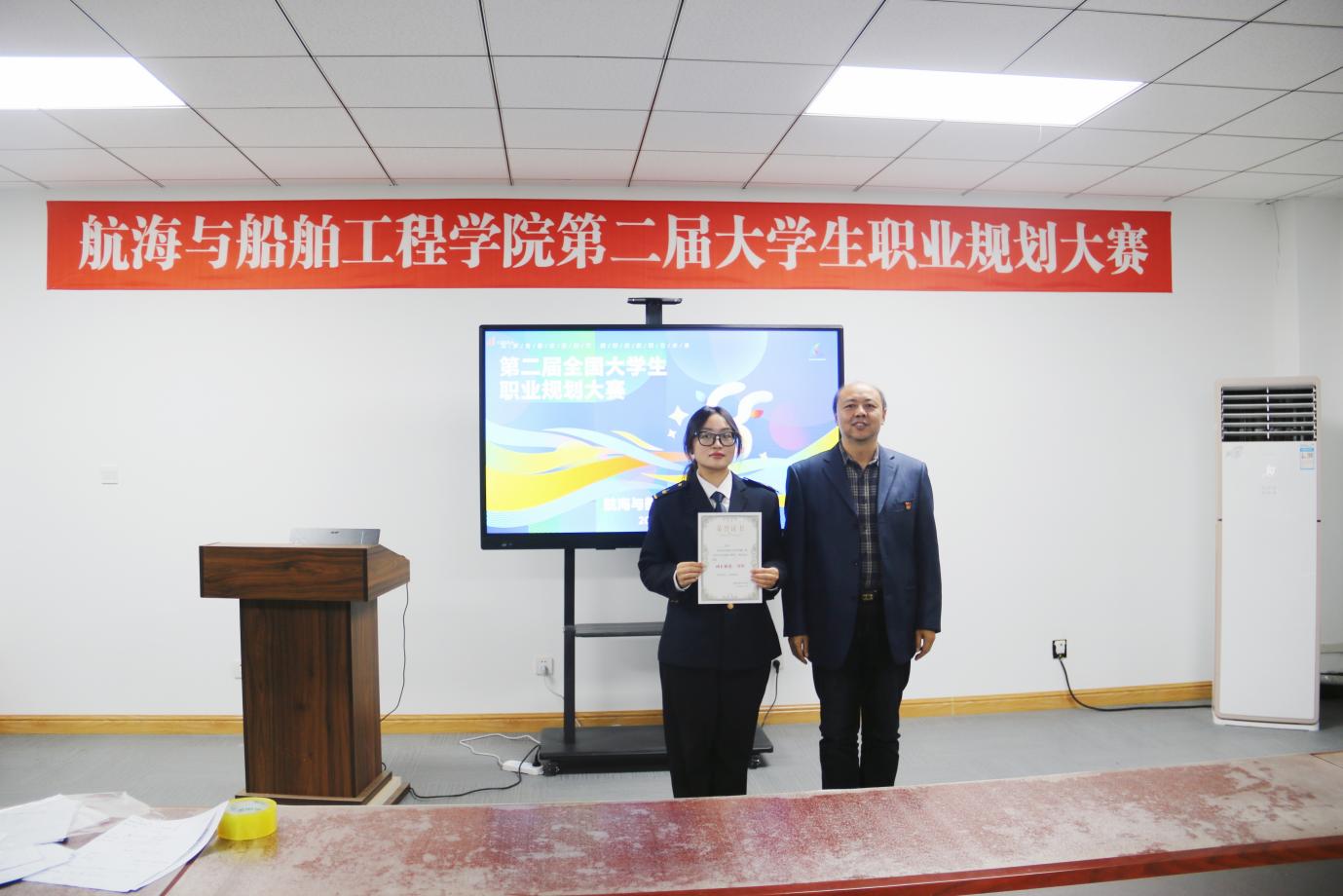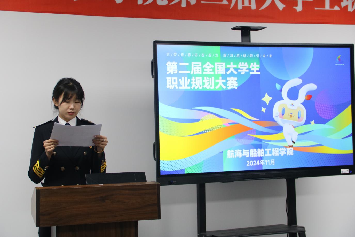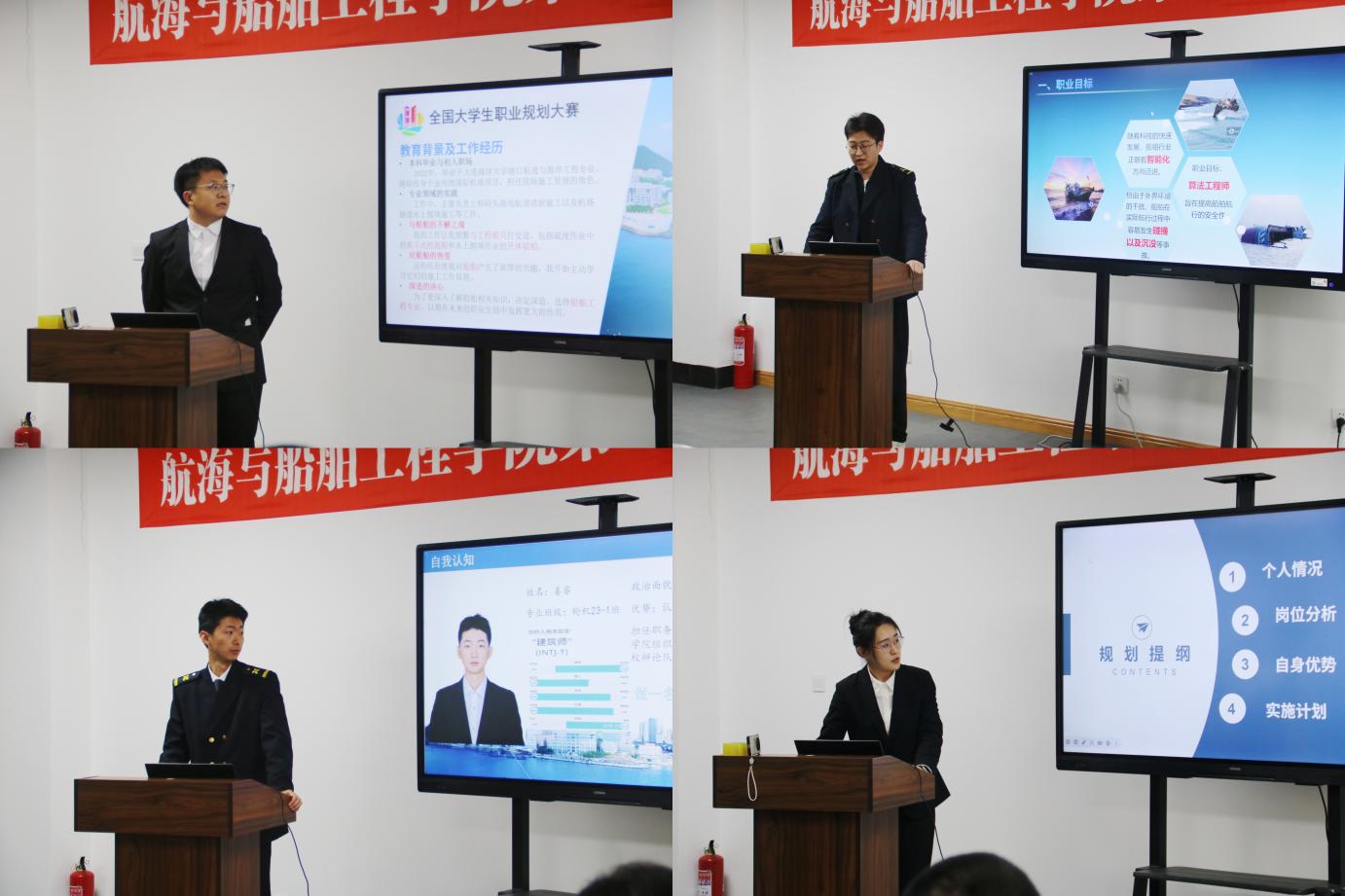 在决赛过程中,学生结合生涯发展目标,对职业目标、学习实践行动、动态调整、岗位胜任力、发展潜力等方面进行主题陈述,并与评委热烈互动。船长、轮机长、工程师、教师、自主创业者等多元的职业选择,充分体现了航船学子将自己的所学专业与未来职业生涯相融合,将自己的个人理想与国家需要、经济社会发展相结合的家国情怀和专业素养。生动激昂地讲述以及真情实感的流露赢得了评委的高度评价和现场观众们的热烈掌声。
