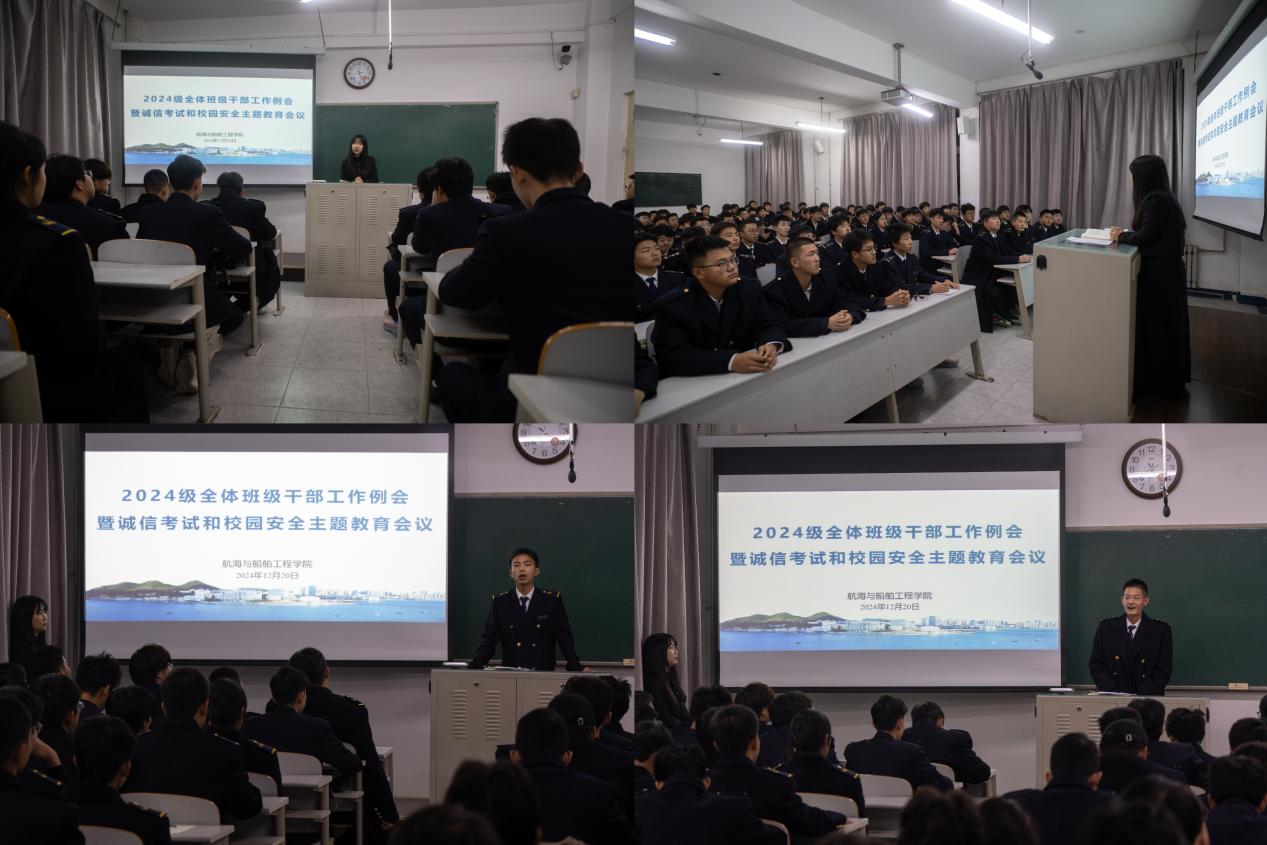 此外,近期学院还通过召开2024级全体班级干部工作例会暨诚信考试和校园安全主题教育会议、组织学生签署《大连海洋大学学生考试诚信应考承诺书》和《爱爱视频 学生假期安全承诺书》、组织学生观看国家安全教育讲座等多种形式加强对2024级学生的诚信考试教育及安全教育,扎实做好各项新生入学教育,全力为学生健康成长保驾护航。