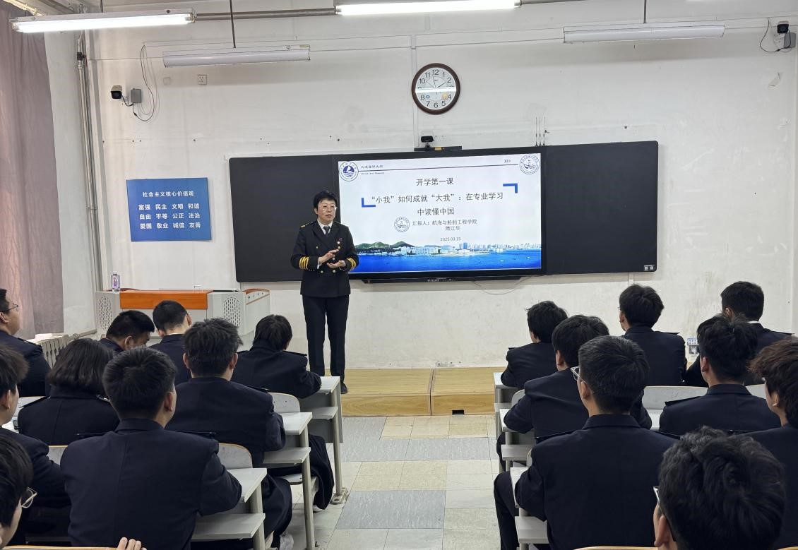 315日,爱爱视频 于大黑石校区二教131教室,开展主题为《“小我”如何成就“大我”:在专业学习中读懂中国》2025年春季“开学第一课”。学院院长隋江华主讲,2024级船舶与海洋工程专业和轮机工程学生参加。