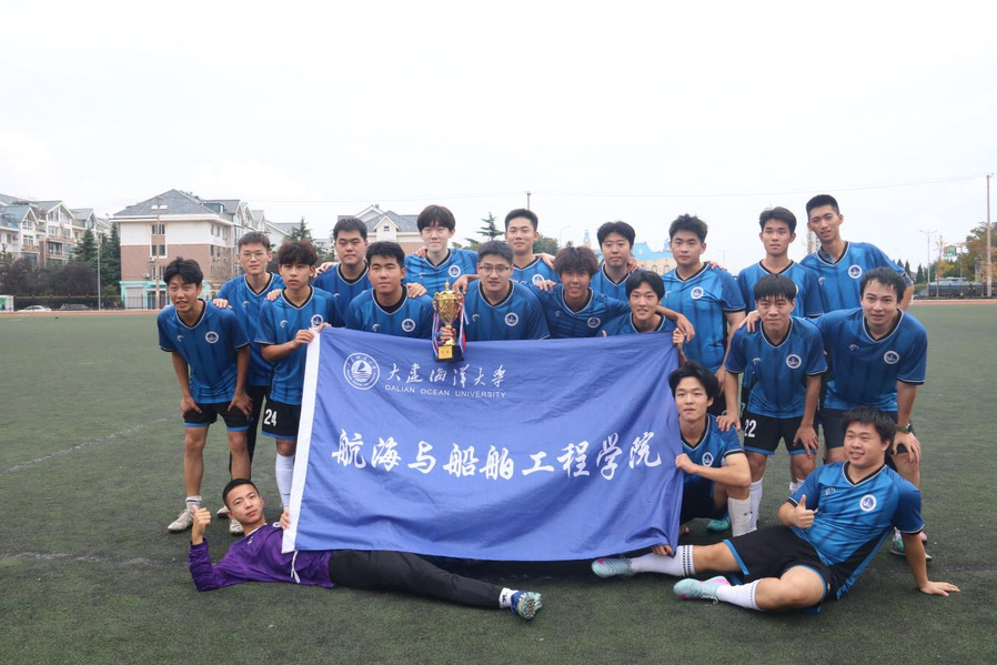 比赛开始前,陈禹娜、宋敬星为即将出征的队员们加油鼓劲。领导的殷切嘱托让队员们倍受鼓舞,大家齐声呐喊,斗志昂扬。随着裁判哨响,决赛正式拉开战幕。面对劲敌,航船学院队员们迅速进入状态,中场拼抢时的果断拦截、边路突破时的迅猛冲刺、门前射门时的精准发力,每一个精彩瞬间都引来观众的阵阵欢呼。下半场尾声,队员们顶住体能消耗的压力,凭借团队配合,将比分锁定优势。终场哨响,全场沸腾,队员们相拥庆祝。颁奖仪式上,赛事主办方将冠军奖杯递到队员手中,大家合影留念,一同分享这份荣耀。当沉甸甸的奖杯被高高举起时,现场掌声与欢呼声再次响起,这一刻,不仅定格了航船学子的竞技风采,更见证了团队协作与永不言弃的体育精神。