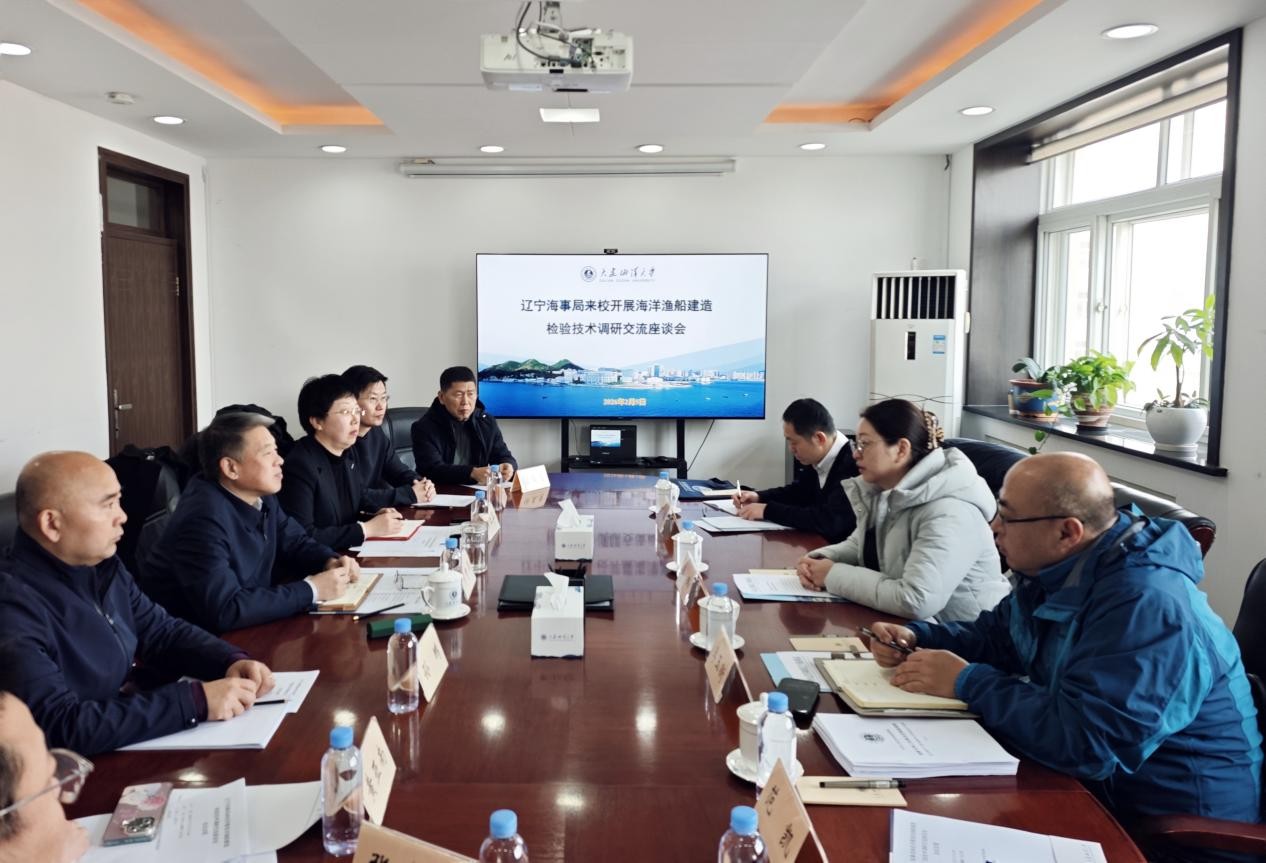 2月5日,辽宁海事局副局长李玮一行莅临我校开展海洋渔船建造检验技术调研。校党委副书记李智军在行政办公楼第三会议室会见调研组,并主持召开座谈会。辽宁海事局船舶检验管理处处长李玉衡、三级调研员丁伟、一级主任科员范凯陪同调研。